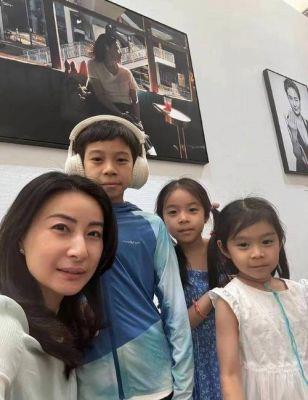 郭晶晶夫妇带娃参观展览,女儿与妈妈亲密互动,儿子在队伍中显得有些失落