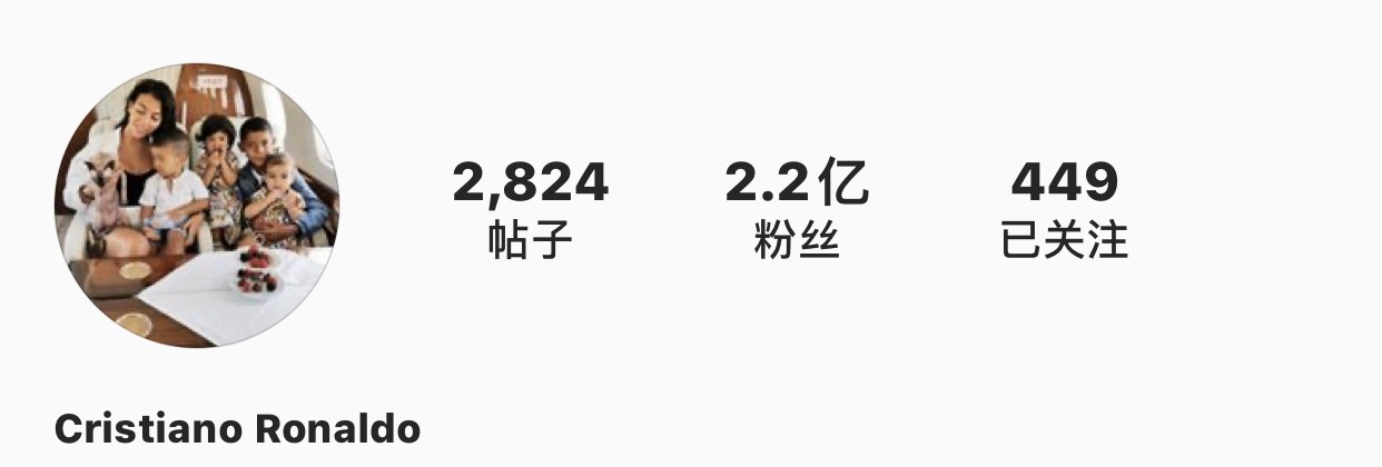 ins粉丝数高达2.2亿。