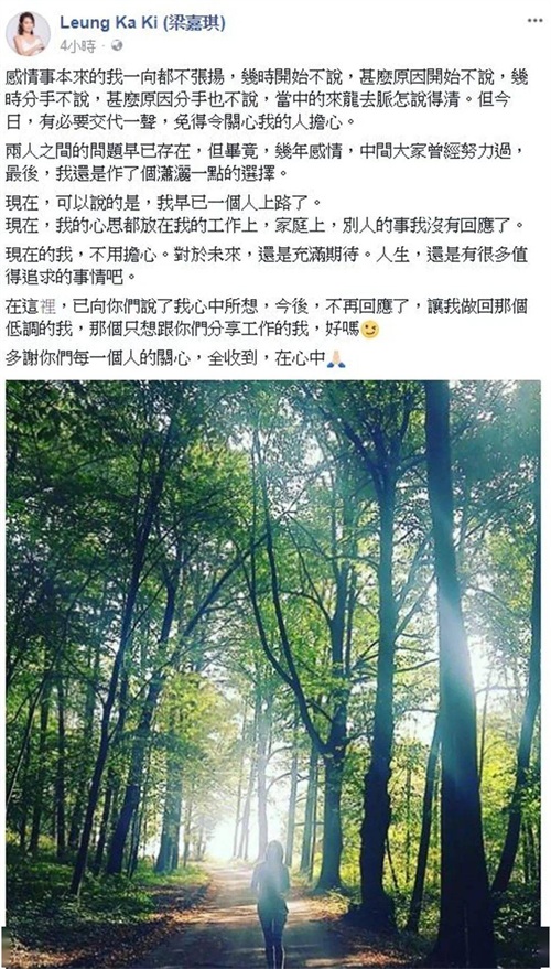 虽然梁嘉琪并未透露分手原因,但大致看客也都清楚了。