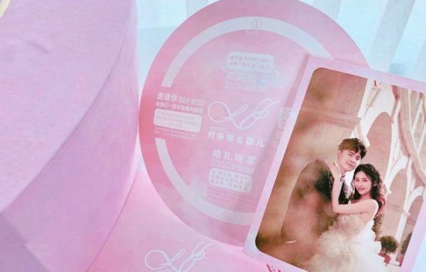 2018年5月15日下午,付辛博、颖儿将在巴厘岛某别墅酒店举行婚礼。15日凌晨,来自全国的媒体也陆续抵达巴厘岛。为了迎接到场媒体,新人细心准备了伴手礼----时光窗花胸针和香水。礼物卡上写道:“5月15日,今天是我们特别的日子,谢谢你们不远千里的到来。我们的相遇是时光馈赠的幸运,时光在窗间流淌,我们相爱相随相伴……”而特别定制的胸针上的标价显示为5999元。