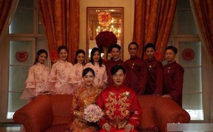 当地时间2018年10月28日,唐嫣罗晋维也纳完婚。有网友曝光现场图片,一对新人与伴郎伴娘团出镜,场地布置地十分精致。