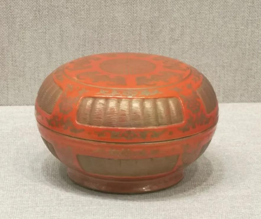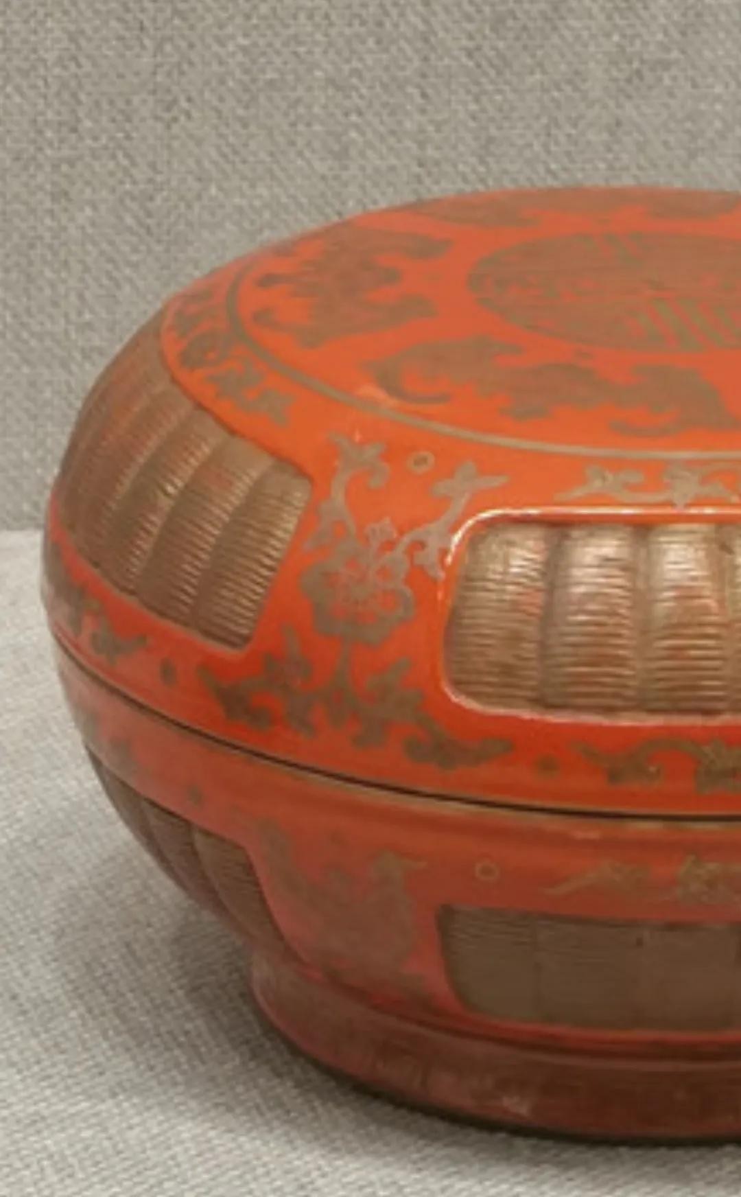 清乾隆 仿竹编漆器金彩五蝠捧寿纹捧盒
