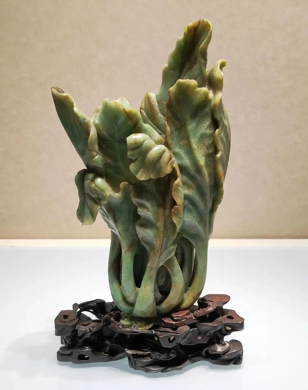清 翠雕白菜式花插