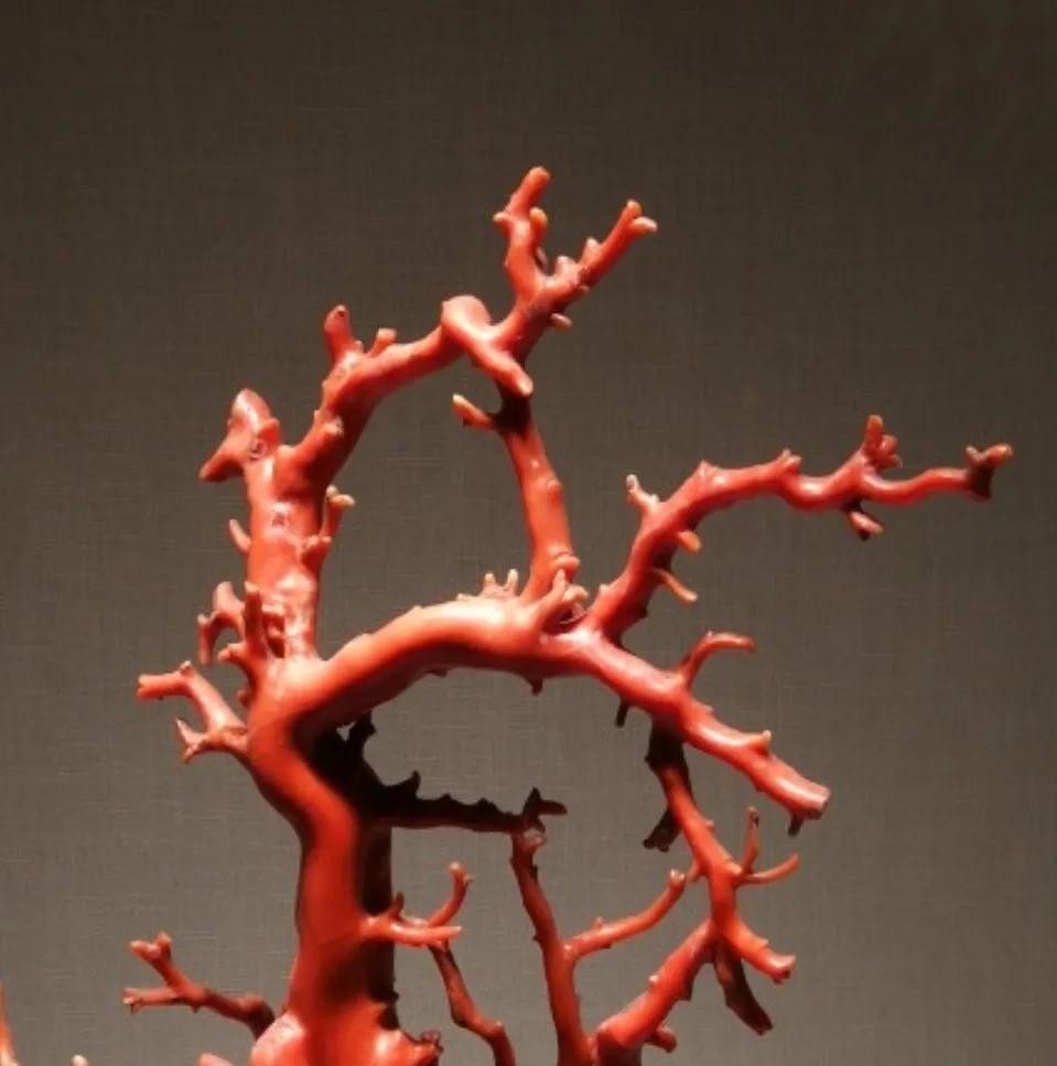 珊瑚是海中的珊瑚虫分泌出的石灰质骨骼堆积而形成的,呈枯干的树枝状。在古代,珊瑚与黄金同价,极受人们的珍视。珊瑚虫分雌雄,可活十几年。珊瑚干径一寸、高一尺者即为好品种,径二寸、高三尺者便很名贵。珊瑚细腻柔韧,可做非常纤细的饰品。在清代,珊瑚是二品官阶的顶戴标志。
