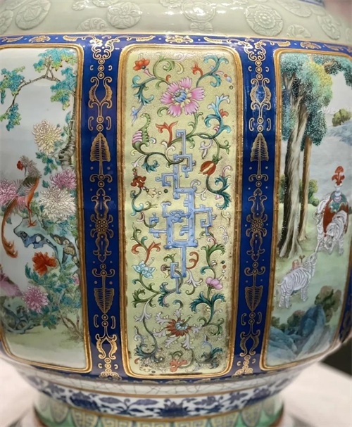 清代乾隆时期历时六十年,是封建社会发展的太平盛世。此时,由于乾隆皇帝嗜古成癖,对瓷器情有所钟,再加之督陶官唐英对景德镇御窑厂的苦心经营,一大批身怀绝技的名工巧匠汇集于景德镇,致使御窑厂的瓷器生产无论在数量还是质量上都达到前所未有的境界。特别是各种新奇淫巧的制品层出不穷,其工艺技术之高可谓鬼斧神工。这件各种釉彩大瓶,集各种高温、低温釉、彩于一身,素有“瓷母”之美称,集中体现了当时高超的制瓷技艺,传世仅此一件,弥足珍贵。