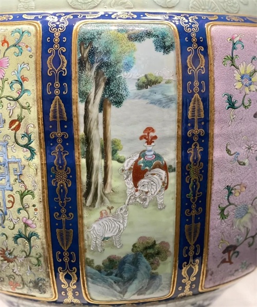 清 画珐琅开光三阳开泰图手炉