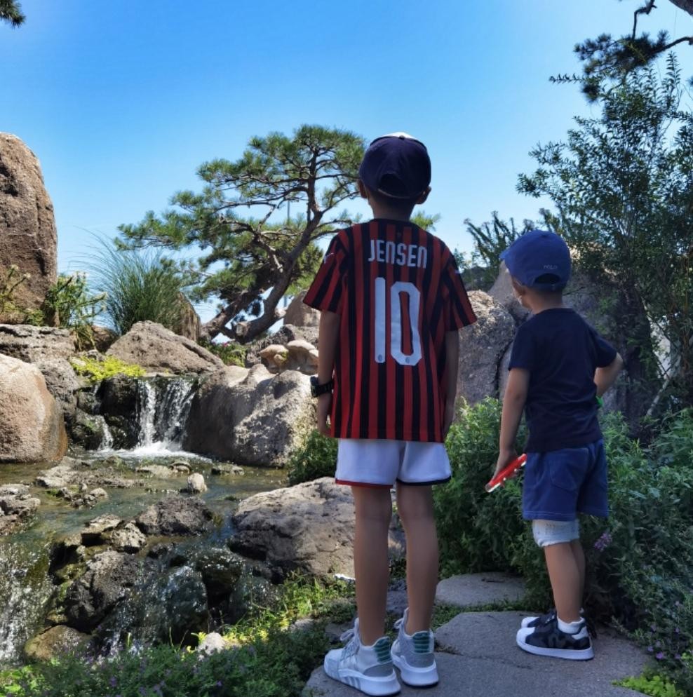 靳东罕晒两儿子合影,以古文为孩子庆生,兄弟俩背影可爱长腿瞩目