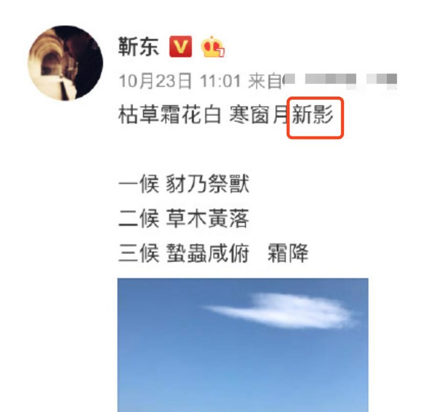 之后大家也不忘找机会揪出靳东在"文化"方面所犯的错误,有一次靳东在社交平台上引用了一句古诗来表示节气,却被大家发现,他将陆游的诗给抄错了!原句应该是"枯草霜花白,寒窗月影新",但他却将最后两个字写颠倒了。