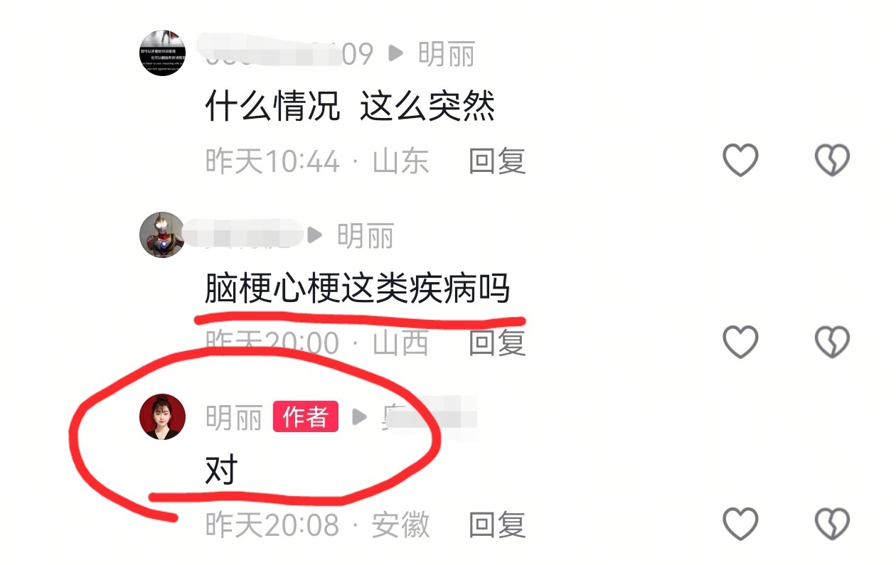 关于去世原因,明丽在评论区透露,是因为心梗,一切来得太突然!