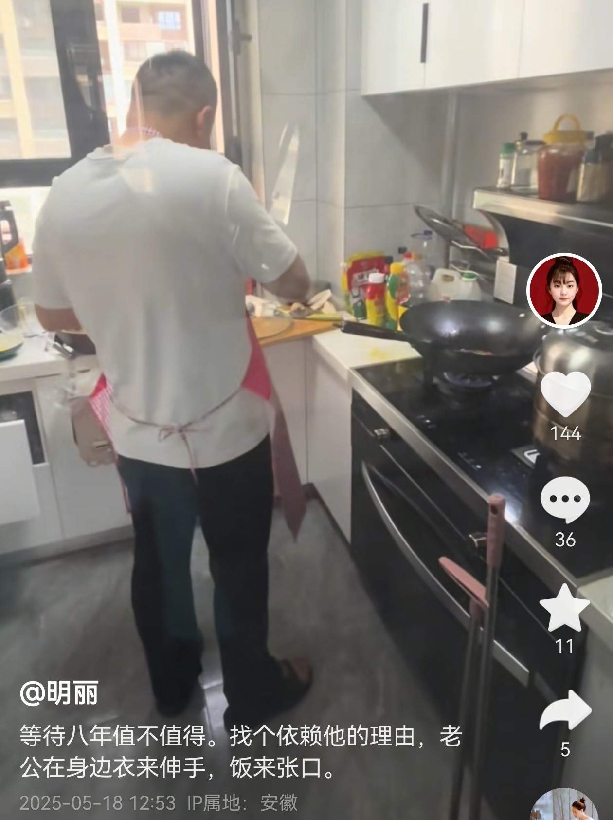 用明丽自己的话说,等待了丈夫八年很值得,如今有老公在身边是衣来伸手,饭来张口。