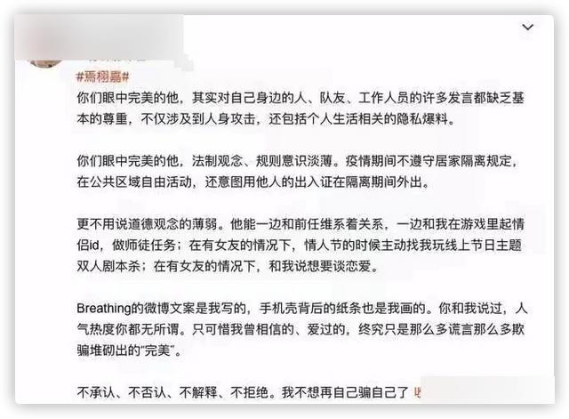 焉栩嘉之前被前女友曝出多次出轨劈腿,还对女方使用冷暴力,人设崩塌彻底。