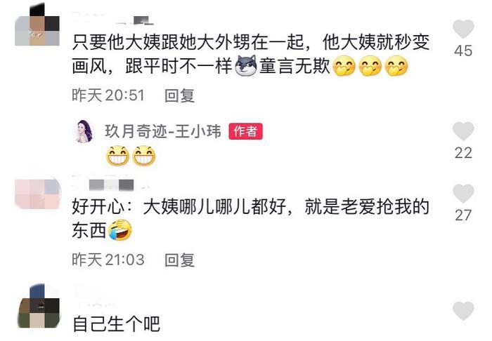 粉丝们也都纷纷评论说,王小玮和侄子在一块愈发童真,还有人期待她自己也生个孩子。