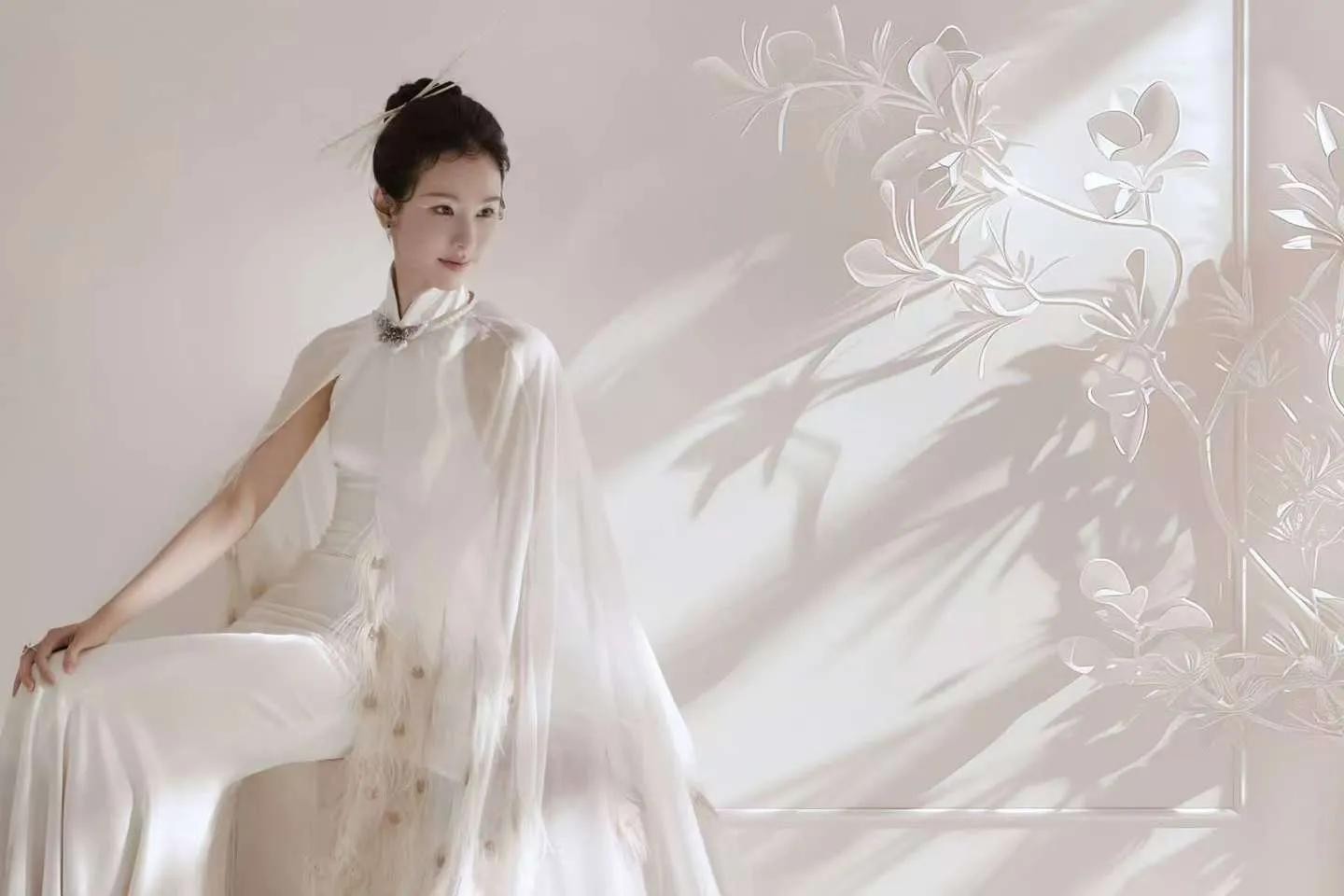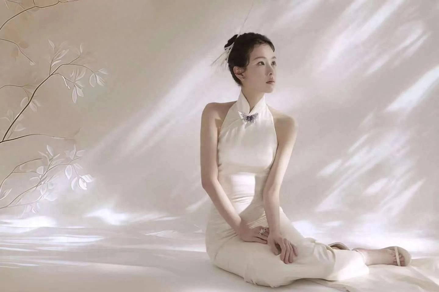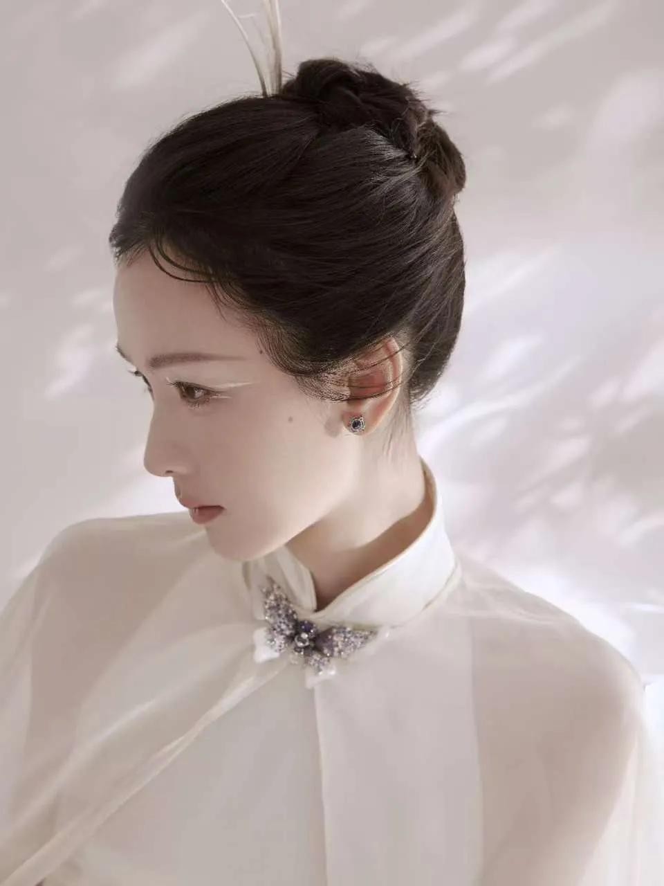 陈都灵宛如一只优雅的白孔雀,在光影交织的画布上轻轻起舞。她身着一袭素雅的白裙,精巧的立领勾勒出脖颈的优美弧度,领口的装饰如同孔雀翎羽般细腻。轻纱般的披风随风飘逸,下摆处点缀的羽毛在空中轻盈舞动,仿佛白孔雀展开的尾翼。乌发高绾,眉眼如画,在这份东方韵味中,举手投足间尽显婉约与灵动。