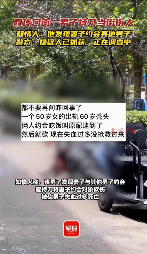 河南一50多岁女子出轨60岁秃头男子,丈夫当街刺伤情夫致死