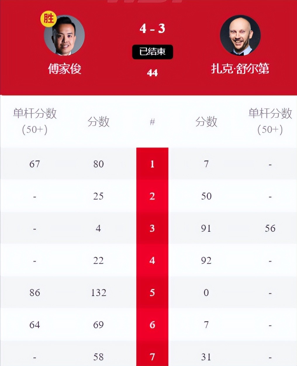 4-1,中国名将傅家俊横扫世锦赛冠军,轰132-0,4-3绝杀世界第79