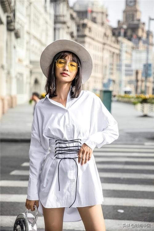 不管是翻领还是一字领,看似普通的白衬衫加上腰封就有了不一样的效果。松垮的衬衫当做裙子来穿也ok,既显瘦又能显得双腿修长,完美的穿出了下半身失踪的感觉。腰封的加入,让衬衫宽松的同时又能拥有腰线,时尚感爆棚。