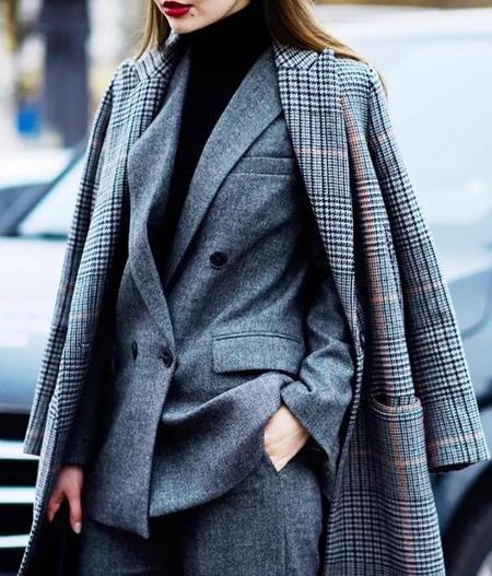 或是不同材质下的搭配,可能还会激发你把过往旧衣服搭出新印象的趣味。比如上学期间,很多姑娘都会有抓绒大衣负责保暖,跟职场人必备的格纹西装组合,很街头的质感