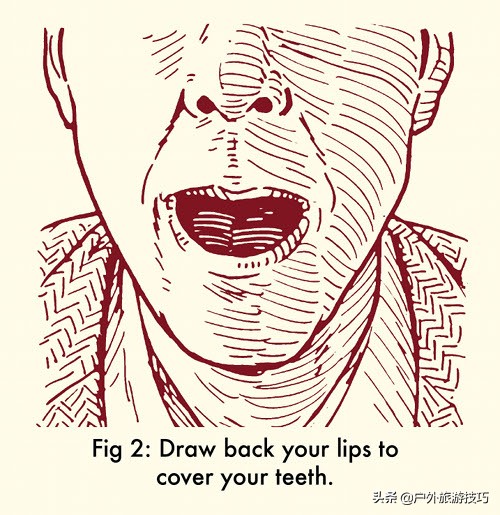 2:把嘴唇收起来,遮住牙齿。
