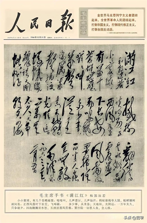 同年年底,郭沫若填《满江红》一词,借此表达中国人民面对反华势力,坚持斗争的必胜信念,同时也歌颂了毛泽东、毛泽东思想坚强的中国人民。毛泽东读后当即作此和词。