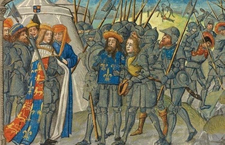 英格兰国王爱德华三世(Edward III)宣称对法国王位的继承权,并发动了一系列侵略法国的战役。法国在早期战争中遭受了严重的挫折,失去了大片领土,局势堪忧。