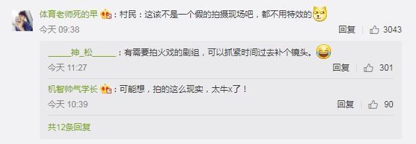 新闻曝光后,许多网友调侃:横店人民是人生如戏,戏如人生。还有网友呼吁需要拍着火场面的剧组可以去补个镜头。