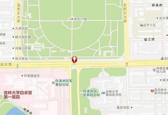 解放大路临近牡丹园、玫瑰园、吉林省展览馆、吉林省博物院、长春市儿童公园、东方游乐园、杏花村公园等地。