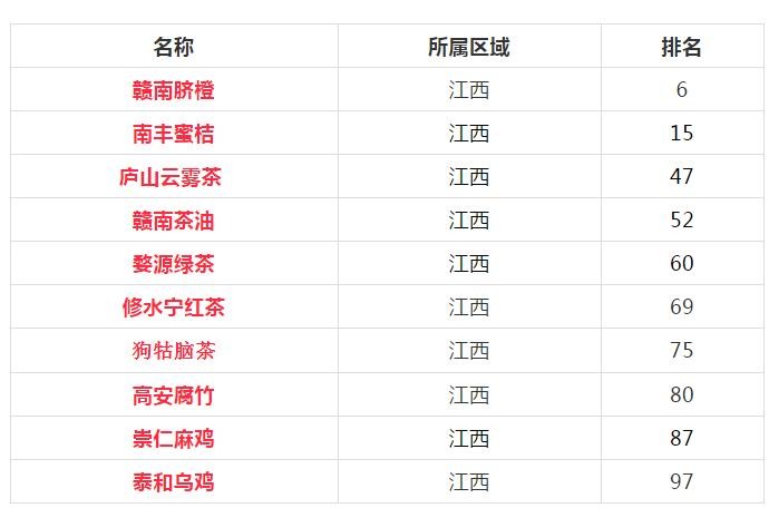 江西10个特产入选全国百强榜单