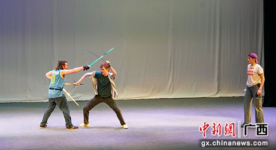 中新网广西新闻10月29日电(杨宗盛)10月28日晚,美国奥城大学学生剧团改编创新的莎士比亚经典著作《罗密欧与朱丽叶》舞剧在广西桂林市大剧院小剧场开演。