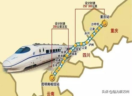 渝昆高铁全线总长约700公里,共设车站20个,其中,重庆段84公里,共设4个车站,分别是重庆西(既有站)、九龙坡(预留站)、江津北、永川南。渝昆高铁建成后,重庆到昆明的时间缩短至两个多小时,而万州至昆明三个小时,可以实现早上在重庆吃面条,下午在昆明游春城,是多么浪漫的事情啊!