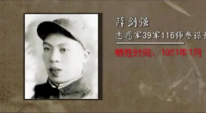 4,薛剑强,志愿军第39军116师参谋长,在釜古里战斗中壮烈牺牲,年仅30岁;
