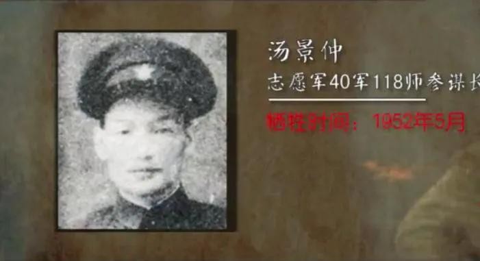 6,汤景仲,志愿军第40军118师参谋长,1952年5月遭遇美军飞机袭击,壮烈牺牲,年仅35岁;