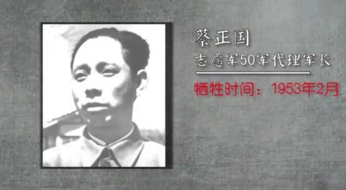 2,蔡正国,志愿军第50军代理军长,1953年4月因美军飞机袭击,壮烈牺牲,时年44岁;