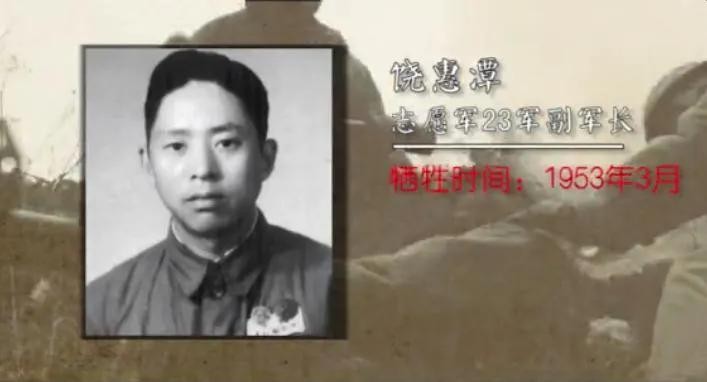 3,饶惠谭,志愿军第23军副军长,1953年3月在第23军指挥部中遭到美军飞机轰炸,不幸中弹牺牲,年仅38岁;