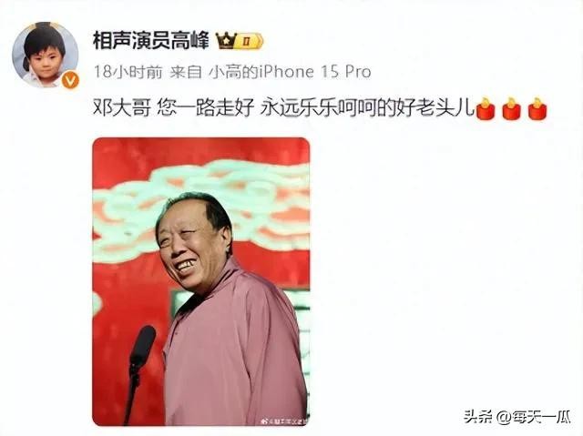 10 月 31 日,德云社相声演员高峰率先发文悼念:“邓大哥,您一路走好!永远乐乐呵呵的好老头儿。”高峰的话语深情且真挚,但我们不禁要问,这看似平常的悼念背后,是否还隐藏着一些未曾言说的故事?