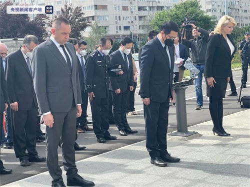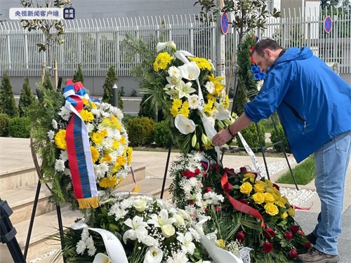 当地时间5月7日上午,中国驻塞尔维亚使馆在我驻南联盟使馆旧址前举行凭吊仪式,悼念北约轰炸中牺牲的三名中国记者。塞尔维亚内务部长武林、塞尔维亚劳动、就业、退伍军人和社会保障部部长特帕夫切维奇、中国驻塞使馆临时代办田一澍出席了活动。塞尔维亚记协代表、贝尔格莱德市政府代表、塞尔维亚友好人士以及部分中资企业、华人华侨等自发前来悼念。