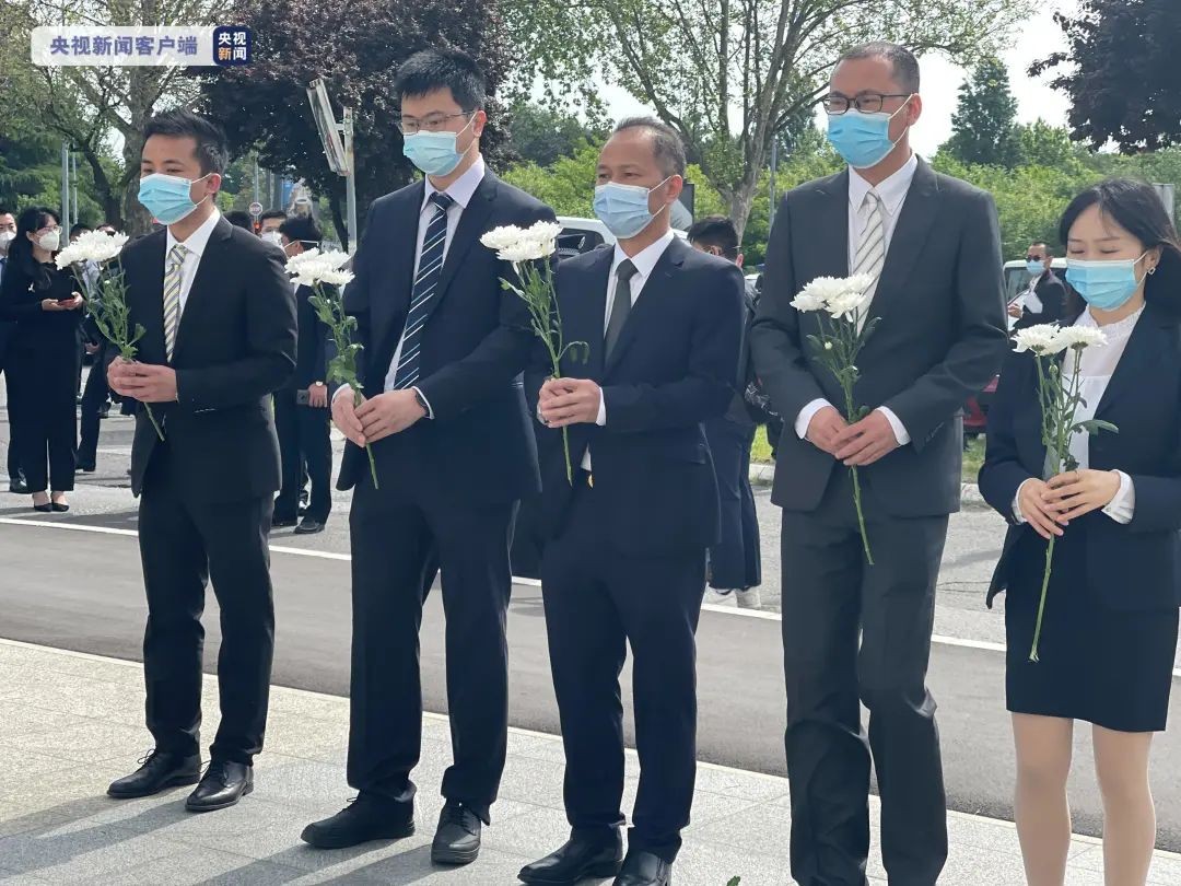 中国驻塞尔维亚使馆举行凭吊仪式,悼念在北约轰炸中牺牲的烈士。