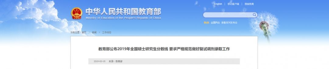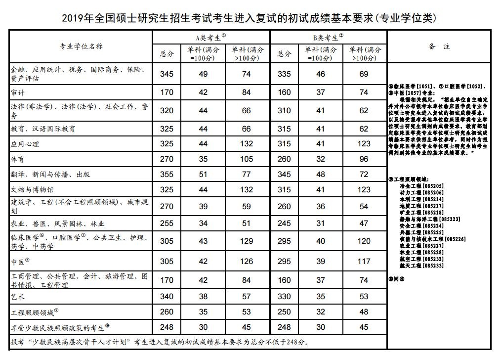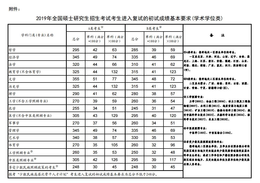 教育部公布了《2019年全国硕士研究生招生考试考生进入复试的初试成绩基本要求》