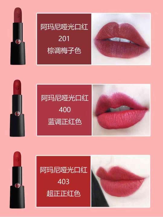 阿玛尼的口红不是太出名,但是颜色还是很好看的,400有点类似于MAC的Ruby woo,这个颜色真的是我的心头好,201是棕调的梅子色,不过这款口红比较挑皮肤,白皮肤的女孩子比较适合哦,403就是超正的正红色了,非常显白,提气场哦。