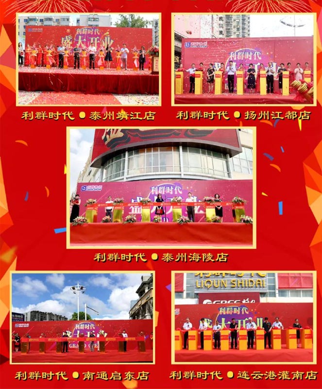 8月3日,利群时代上海普陀店、利群时代扬州店、利群时代南通海安店、利群时代淮安淮海北路店、利群时代连云港朝阳路店同时同步开门纳客。