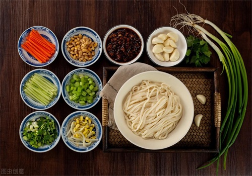 此外,炸酱面的配菜也很有讲究,会根据季节的变化进行变化。新鲜的时令蔬菜,品尝炸酱面的同时,需要边吃边搅拌,确保每一根面条都能充分裹上炸酱,让配料的鲜美充分融入口感。