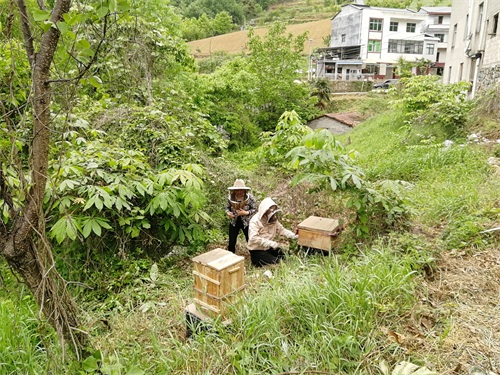 每年五六月份,天气暖和了,山上蜜源较多,周正龙一家人会将蜂箱从文彩村搬到附近的山上。十月份左右天气冷下来,再将蜂箱搬回到文彩村,年年如此。