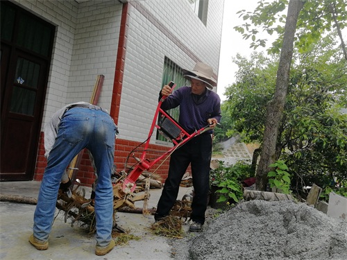 周正龙请人平整坡地,正在整理农具。摄影:李子健