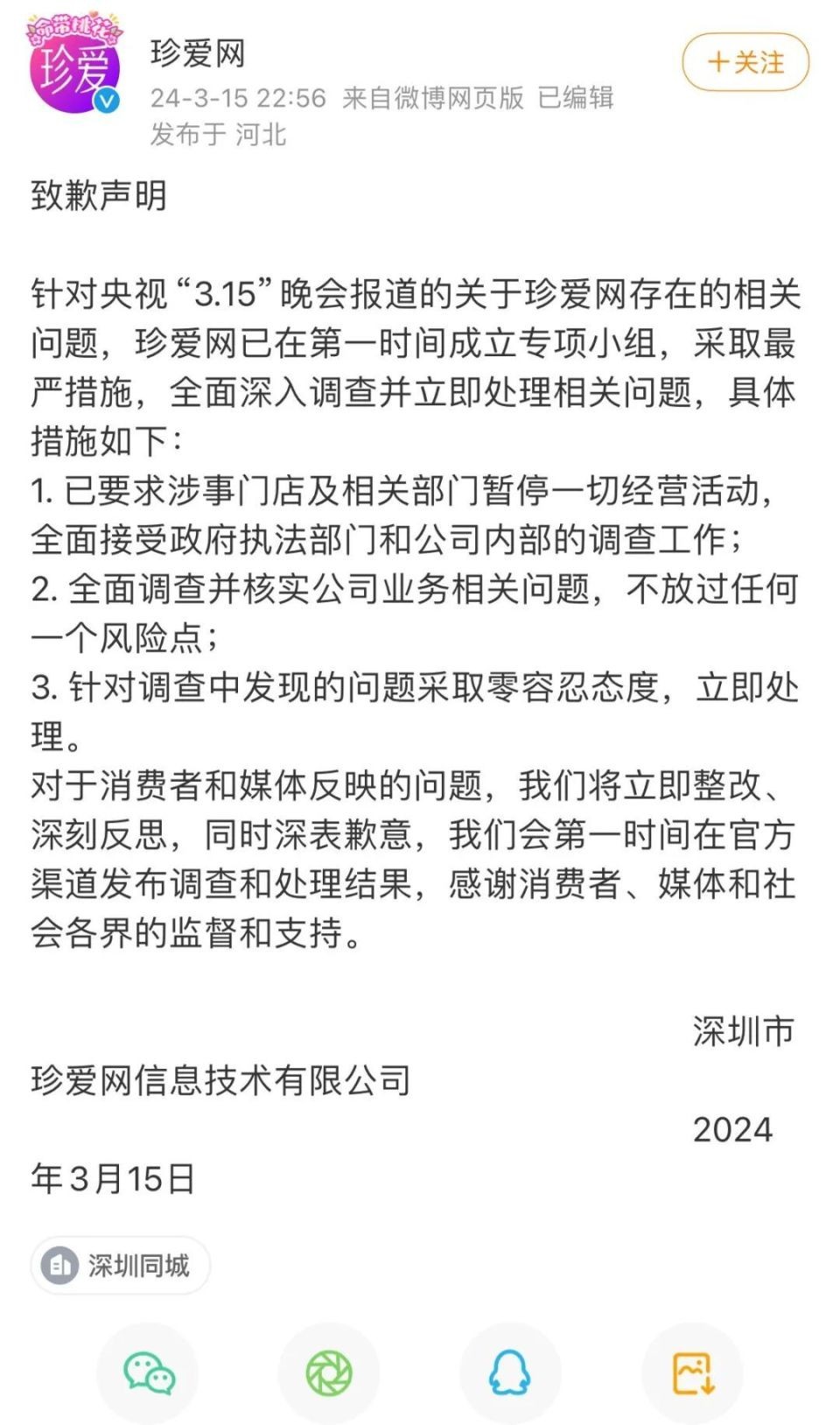 珍爱网回应