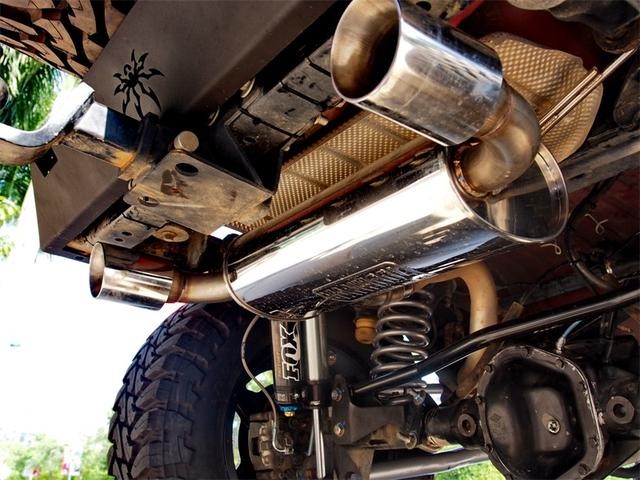 排气改装了VANHOOL牧马人JK两边单出排气尾段,材质为SUS304不锈钢。需要注意的一点是,原装的牧马人,不管是罗宾汉或是撒哈拉,都是单出尾管,而Vanhool的尾段则提供双出尾管,带来更为畅快的排气效果,也为牧马人车尾带来性能车般的视觉感受。