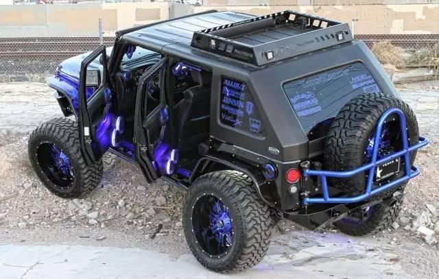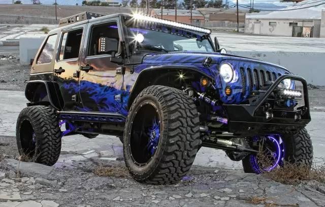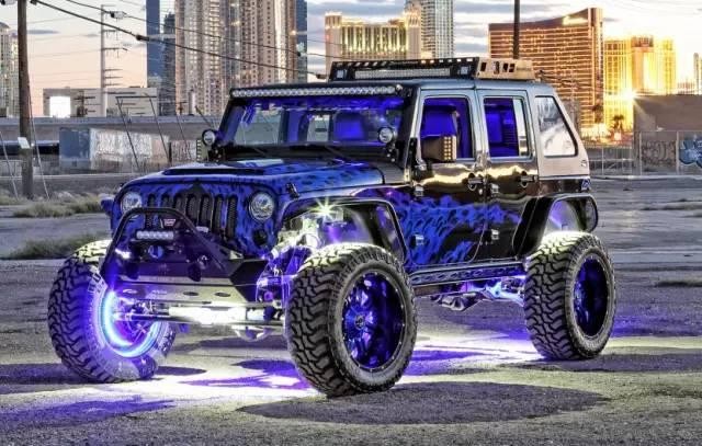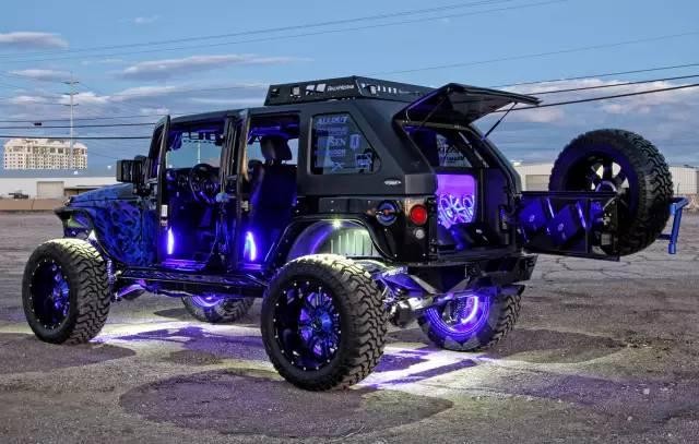 Jeep牧马人车型自诞生以来,就一直被作为全世界越野爱好者的终极向往,它象征着自由和激情,以及对更纯粹生活方式的理解和追求。牧马人为越野而生,更为越野而改...当然这句话不包括今天这位牧马人,身体里虽然流淌着硬汉的血液,但相比全路况之王,沉迷于灯红酒绿的它更愿意变身为一个夜总会,一个酒醉灯谜的大party... 看看它全身包裹的梦幻紫色霓虹灯和隔着几个街区都能听见的DUB Edition音响,虽然还保留着不少越野能力,但这辆牧马人的心早已从加利福尼亚跑到拉斯维加斯了。