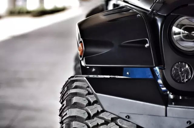 美国风情常常与狂野挂钩,硬朗的外形、身上的派别符号,黑蜘蛛套件的升级加持下,进一步凸显车子的肌肉感,线条直接的灯眉贯穿前脸,形成一种坚固防盾,一种强悍的视觉冲击迎面扑来,如果细心发现,你前前后后里里外外都是黑蜘蛛“装甲”披身,温馨提醒各位,你的车辆千万别和它挨得太近了。