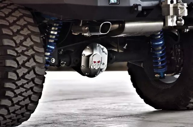 FOX推出2.5寸直径(桶身)的减震器是可谓是翻身之作,加大的桶身可容纳更多的油量,令减震器在越野路面的上的表现相较于旧款硬实的表现,可谓柔韧有余。Teraflex 的3-6寸前方向套装和RAPTOR后止推杆,对于升高4.5英寸的牧马人来说,这些配件是保证车辆越野安全的必须品,这样才能享受更多的越野乐趣。