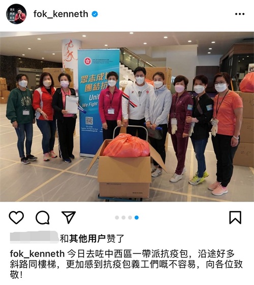 2022年4月4日,霍启刚在社交平台上晒出与妻子郭晶晶,一同支持香港抗疫,