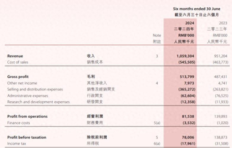 但进入到2024年,燕窝产品进一步普及的动力出现了疲软。2024年上半年,燕之屋营收10.59亿元,同比增长11.36%,但归母净利润却同比下滑了42.54%至5808万元,近三年来首次进入负增长区间。