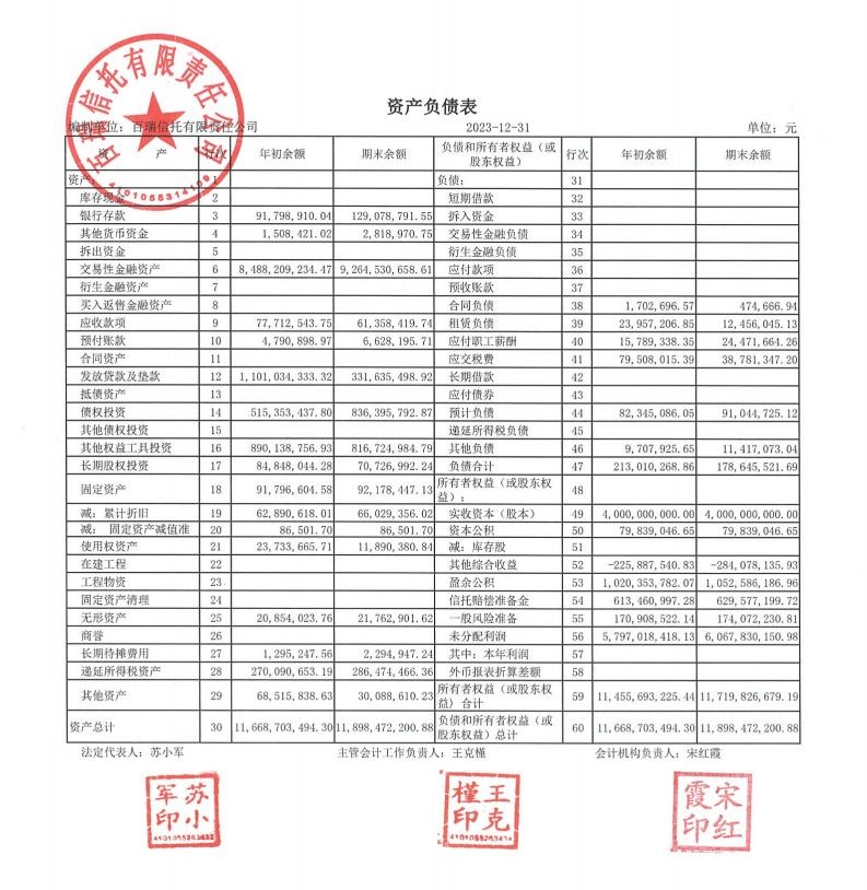 最新财务数据显示,2023年百瑞信托实现营业收入8.24亿元,同比下降21.5%;净利润为3.22亿元,同比下降46.68%。